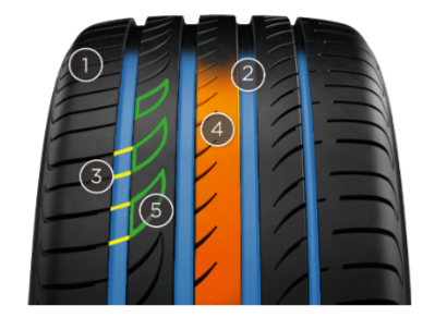 1. ПОЛИМЕРНЫЙ СОСТАВ РЕЗИНОВОЙ СМЕСИ — Улучшенные характеристики на мокрой и сухой дороге, повышенная износоустойчивость.